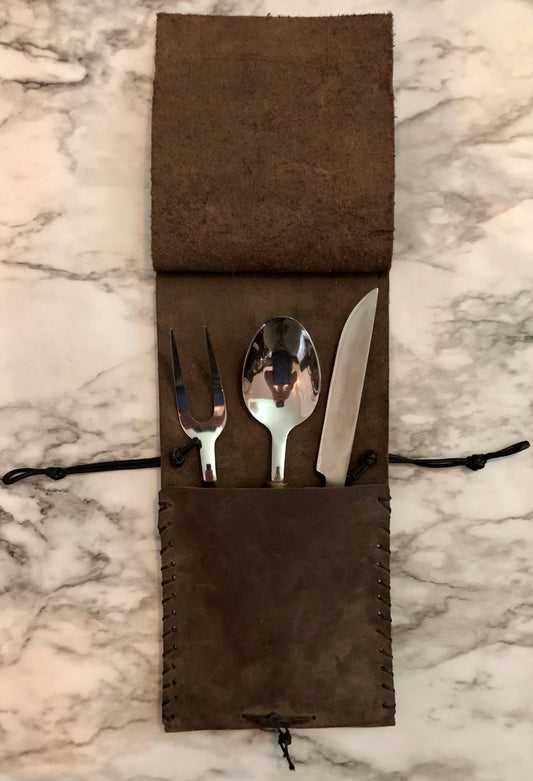 Hand Forged Set of 3 Medieval Feasting Set with Pouch