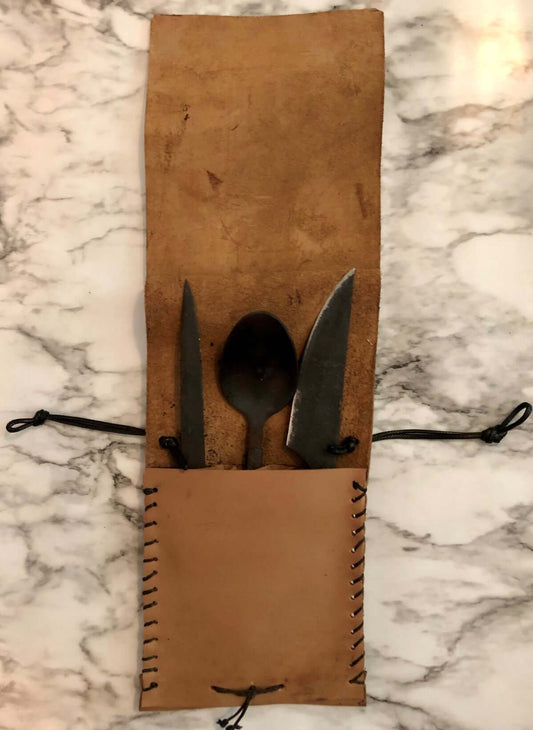 Hand Forged Set of 3 Renaissance Medieval Feasting Set with Leather Pouch