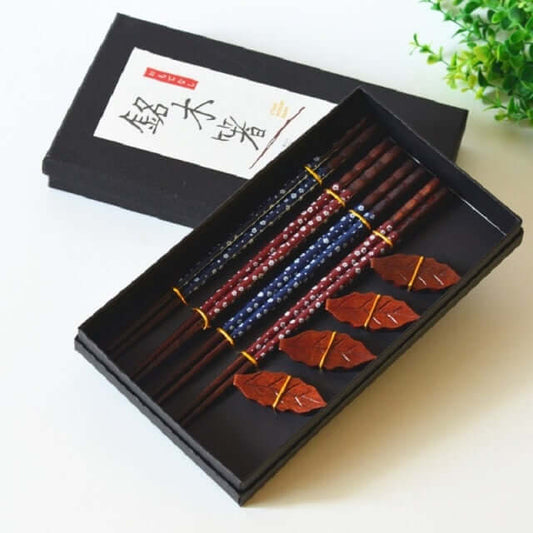 8 Pcs Gift Pack 4 Chopsticks+4 chopsticks Holders Handmade Japanese Natural Wood Chopsticks Set