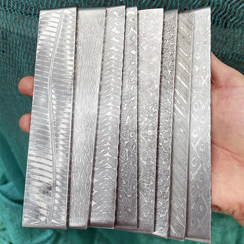 When you grind it into a blade the Damascus will disappear. You will have to acid dip or also referred to as Pickling and the characteristics of the steel will appear again.