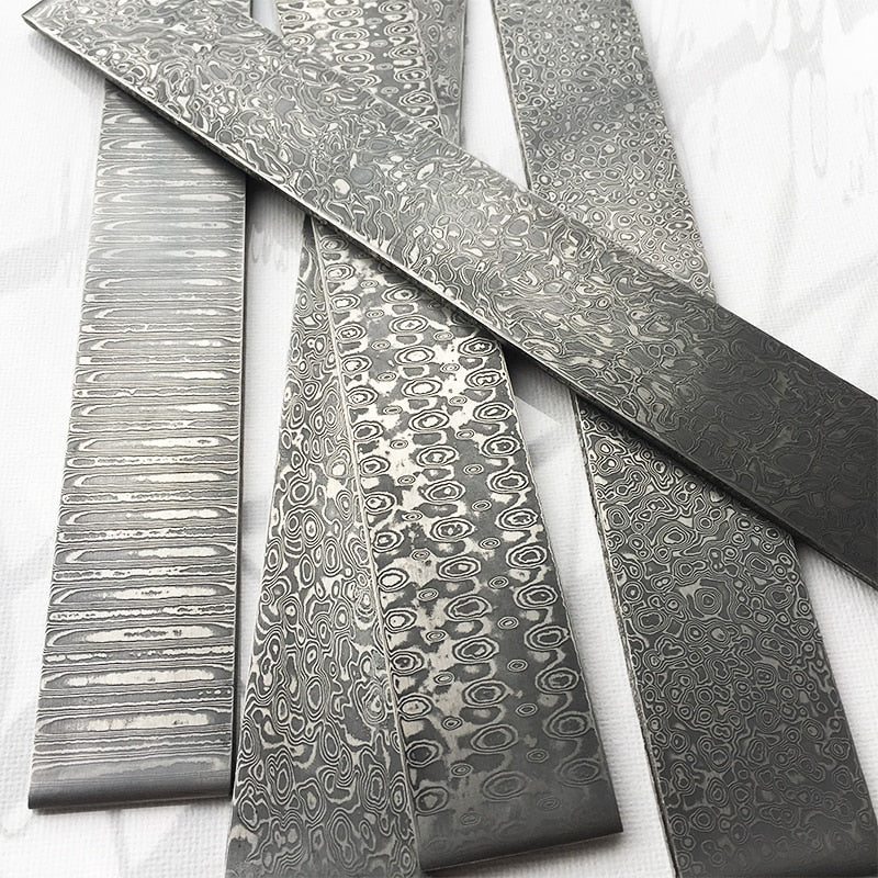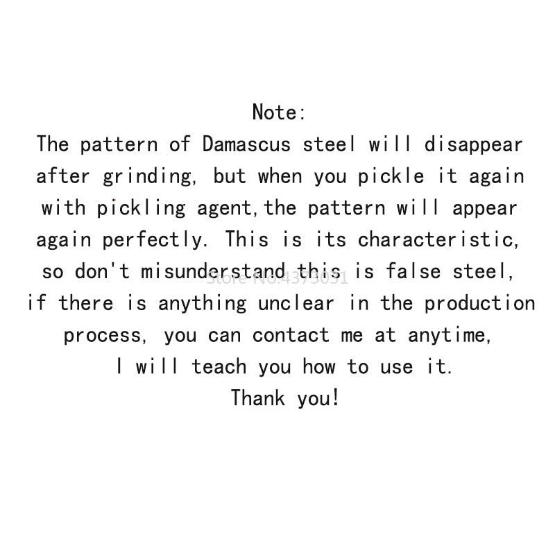 When you grind it into a blade the Damascus will disappear. You will have to acid dip or also referred to as Pickling and the characteristics of the steel will appear again.