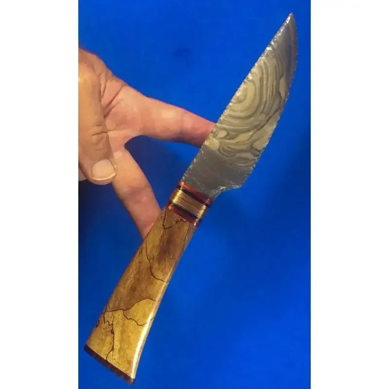 Spalted maple is not a unique species, but rather maple wood (often sugar maple) that has begun a natural decay process, resulting in dramatic, inky, black zone lines and contrasting, colorful, or bleached streaks caused by fungi. Highly prized by woodworkers, this wood is used for specialty items, musical instruments, bowls, and furniture and yes! Knife Handles!