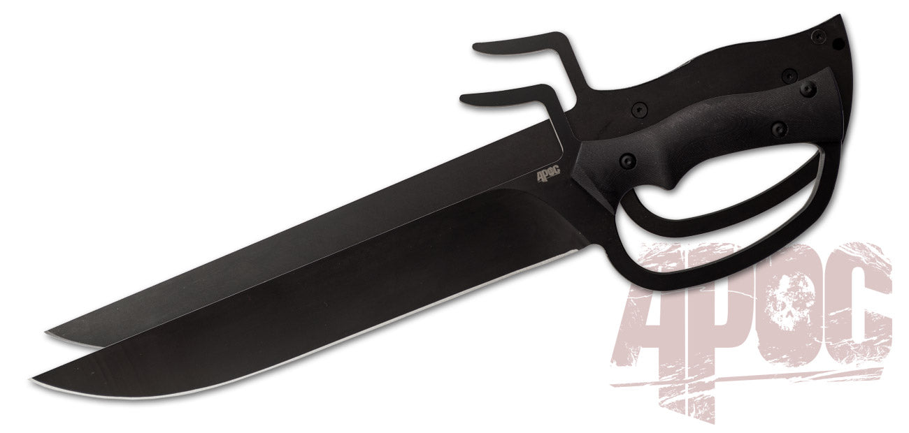 It’s a monastic life living on the wasteland after apocalypse for a lone survivor. With limited food and little conversation or hope, all that you have on your person or in your hands is all that you need to make it another day. But on that occasion when you’re tag teamed by a couple of ruffians, its good have a surprise of your own. Our APOC Butterfly Swords give you that advantage in both hands for defense and offense.