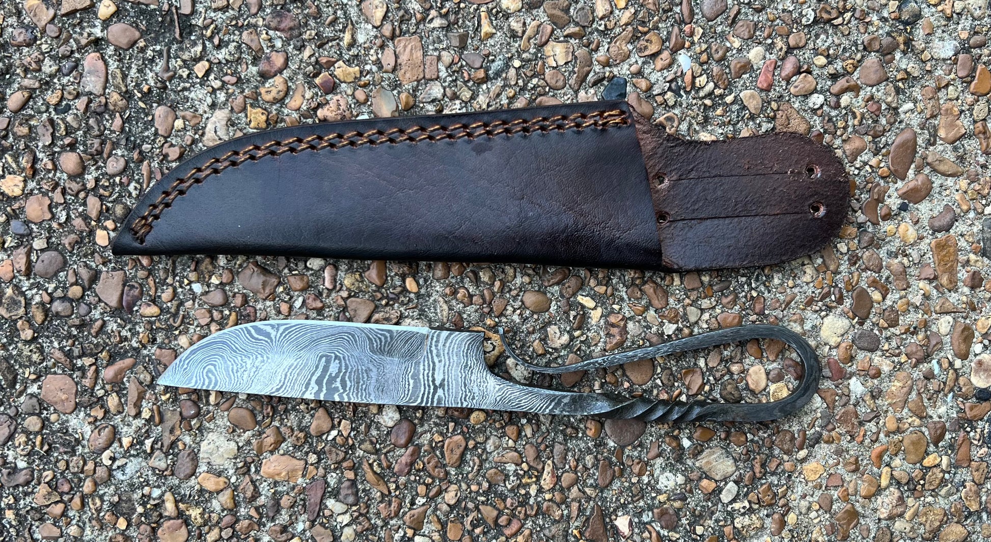 Damascus Medieval Feast Knife Handmade w/ Hand Twisted Handle