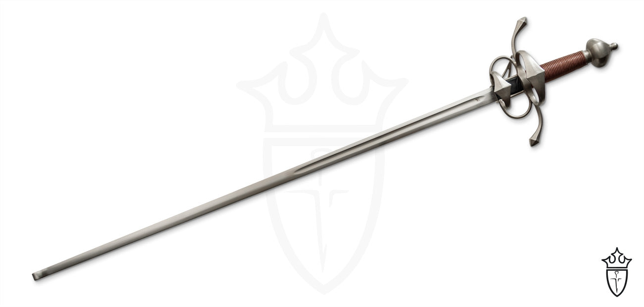 Designed for safe use in fencing practice, the Renaissance Side Sword by CAS Hanwei, provides a realistic fencing simulator to the renaissance period HEMA practitioner. Unique in the time of the primarily piercing oriented rapiers, the side sword kept the cut and thrust aspects of the late medieval arming swords and added the protection of a complex hilt hand guard. This side sword features thick well-rounded edges and a rolled tip for greater thrusting safety. However, with all fencing swords we suggest affixing a rubber tip blunt or piece of leather strip taped to the tip.
