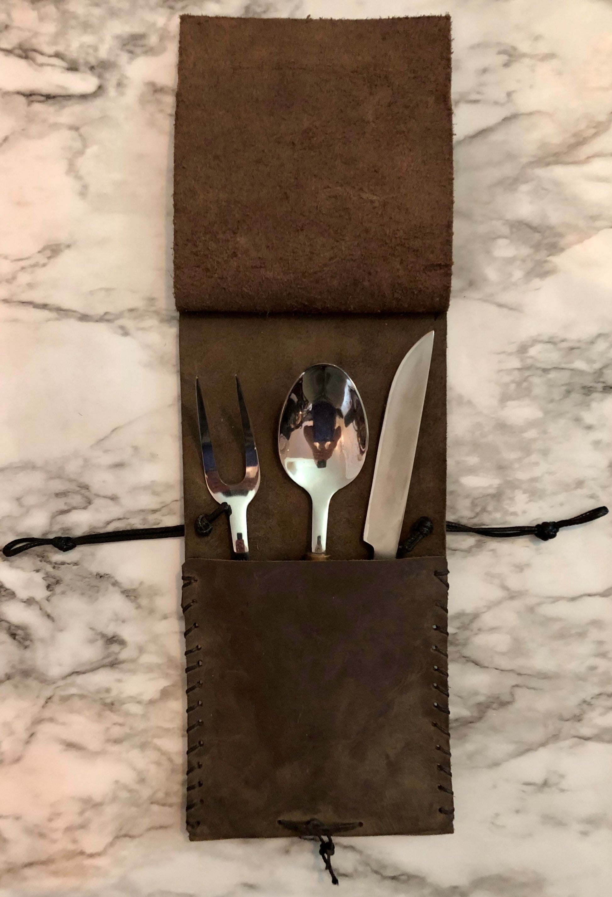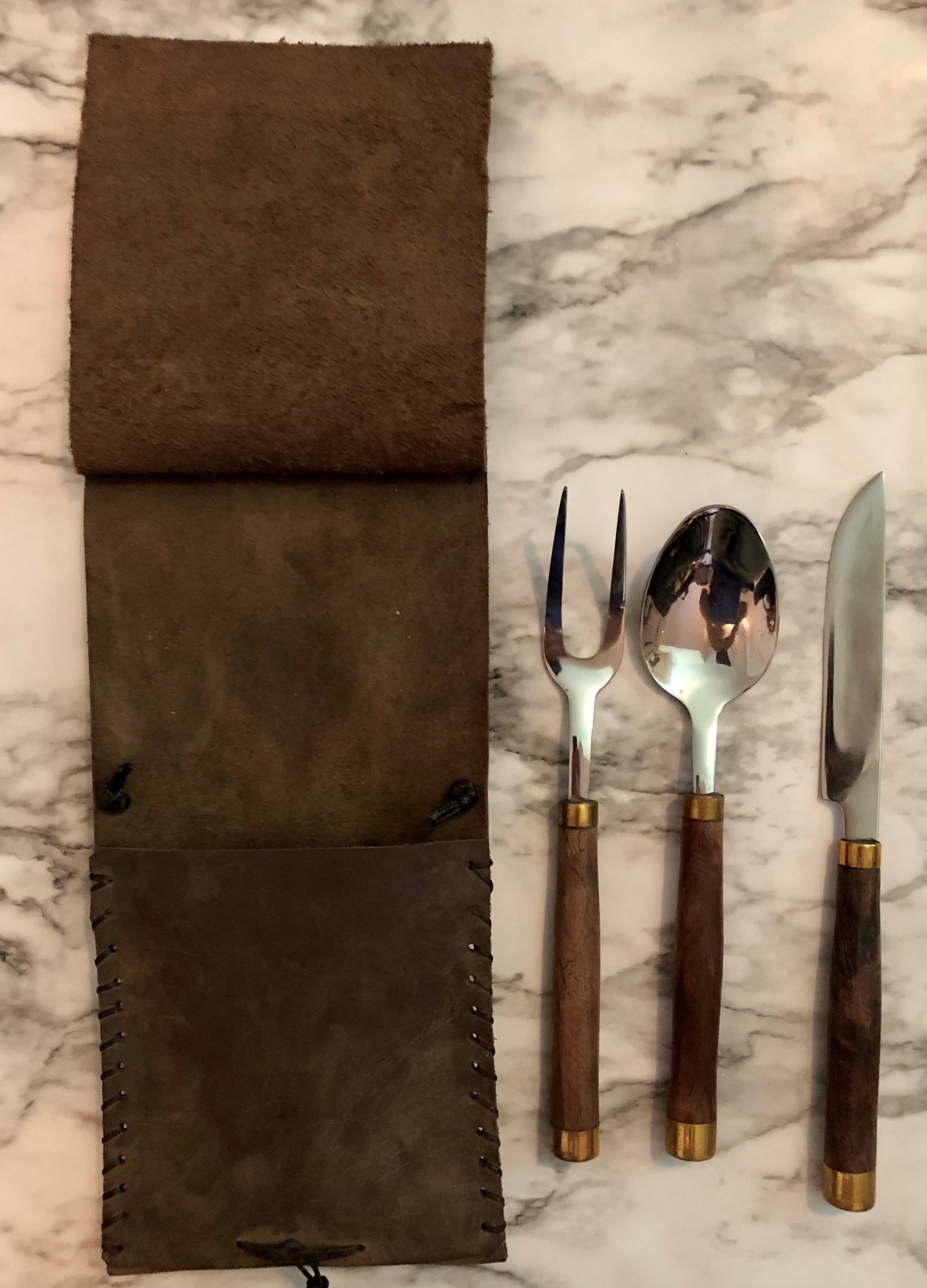 Hand Forged Set of 3 Renaissance Medieval Feasting Set with Leather Pouch