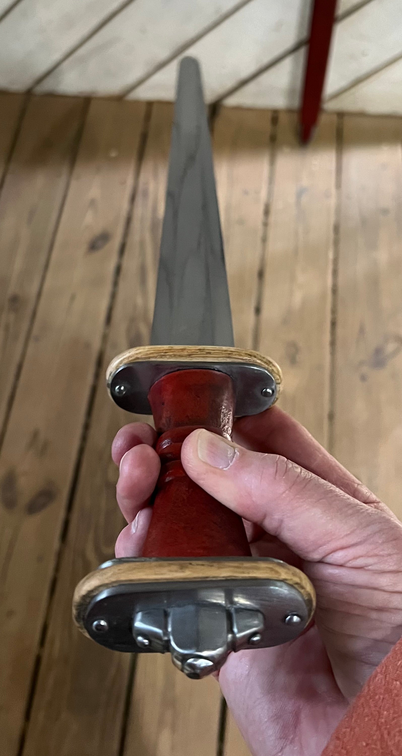 I love this sword. The Quality/Control is better than I would have imagined for a 300$ sword from a economy line and Kingdom of Arms have a great Customer Service. Very comfortable to handle and very very light too. A little whippy but very solid. Quite normal for a blade of this dimention. The scabbard is simple but quite unique and well made. Beautiful small Migration Era sword. Replica swords from this period are still quite rare, especially around $300. Its close to a perfect sword, very nice and interesting. It's not a ceremonial sword, it's the sword of a warrior ! Simplicity at its best! Those who know me know that I prefer big Viking swords but Im happy to own this piece in my collection. It’s a rare unique design sword very fun to play with. A very good fit in your collection if you also like to collect different types of weapons from different periods of history (this is why my own collection is so large). Im giving 5 stars out of five for this sword.