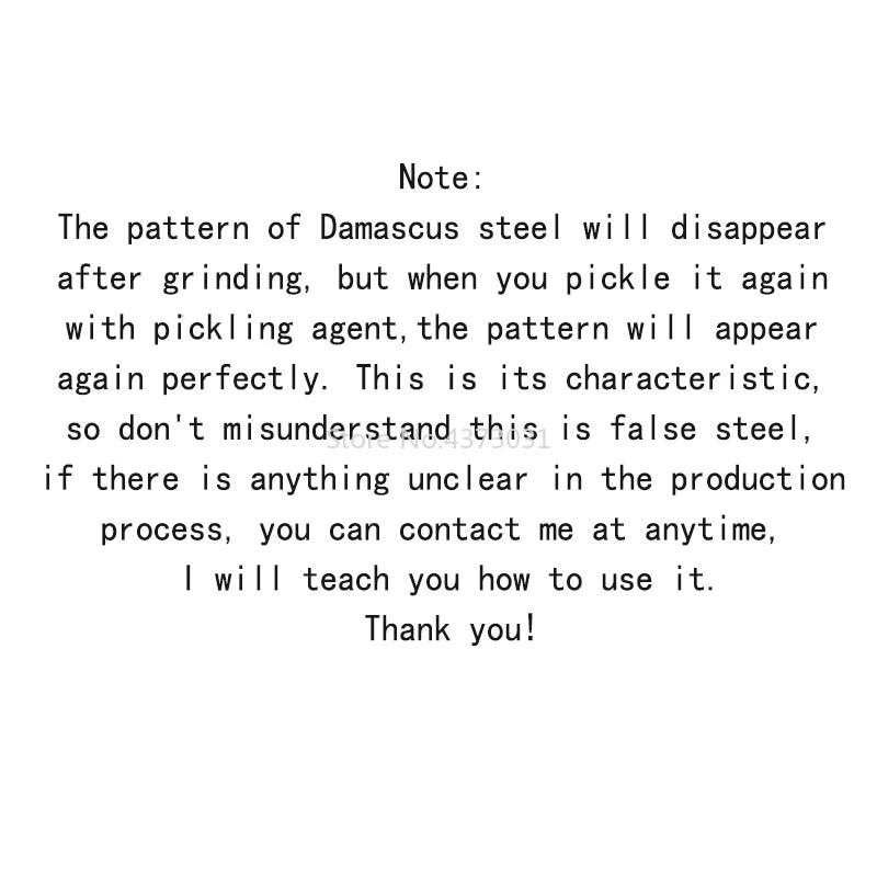 After grinding or polishing, the Damascus pattern will temporarily disappear. To reveal the layered design again, simply pickle the surface with a ferric chloride solution or other etching agent. This is a standard and expected characteristic of all Damascus steels.